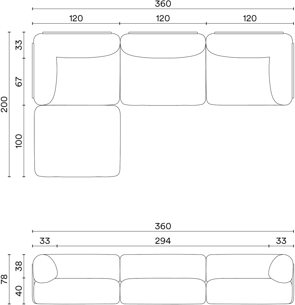 Sano 3-Seater Chaise 360×200